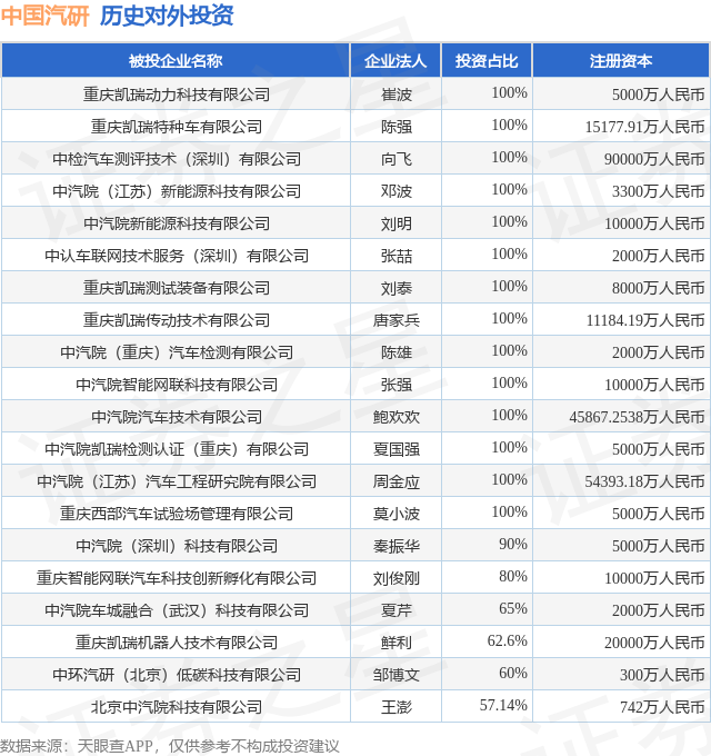 本站消息,根据天眼查APP显示,中国汽研(601965.SH)新增一起对外投资事件,被投资公司为天津天平质量检测发展有限公司赢赢顺配资,法定代表人张喆赢赢顺配资,投资占比为-。该公司从事专业技术服务业,注册资本为5000万人民币。目前,中国汽研共存在对外投资36项,投资占比前20的项目见下表: