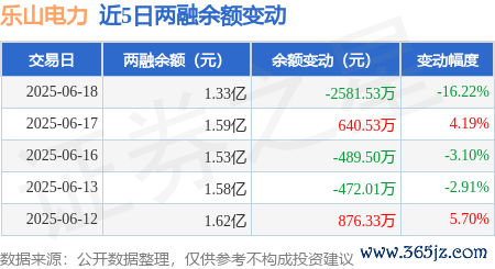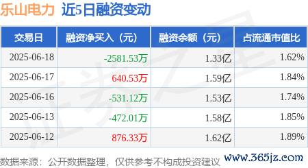 本站消息,6月18日,乐山电力(600644)融资买入3457.14万元,融资偿还6038.67万元,融资净卖出2581.53万元融可赢,融资余额1.33亿元。